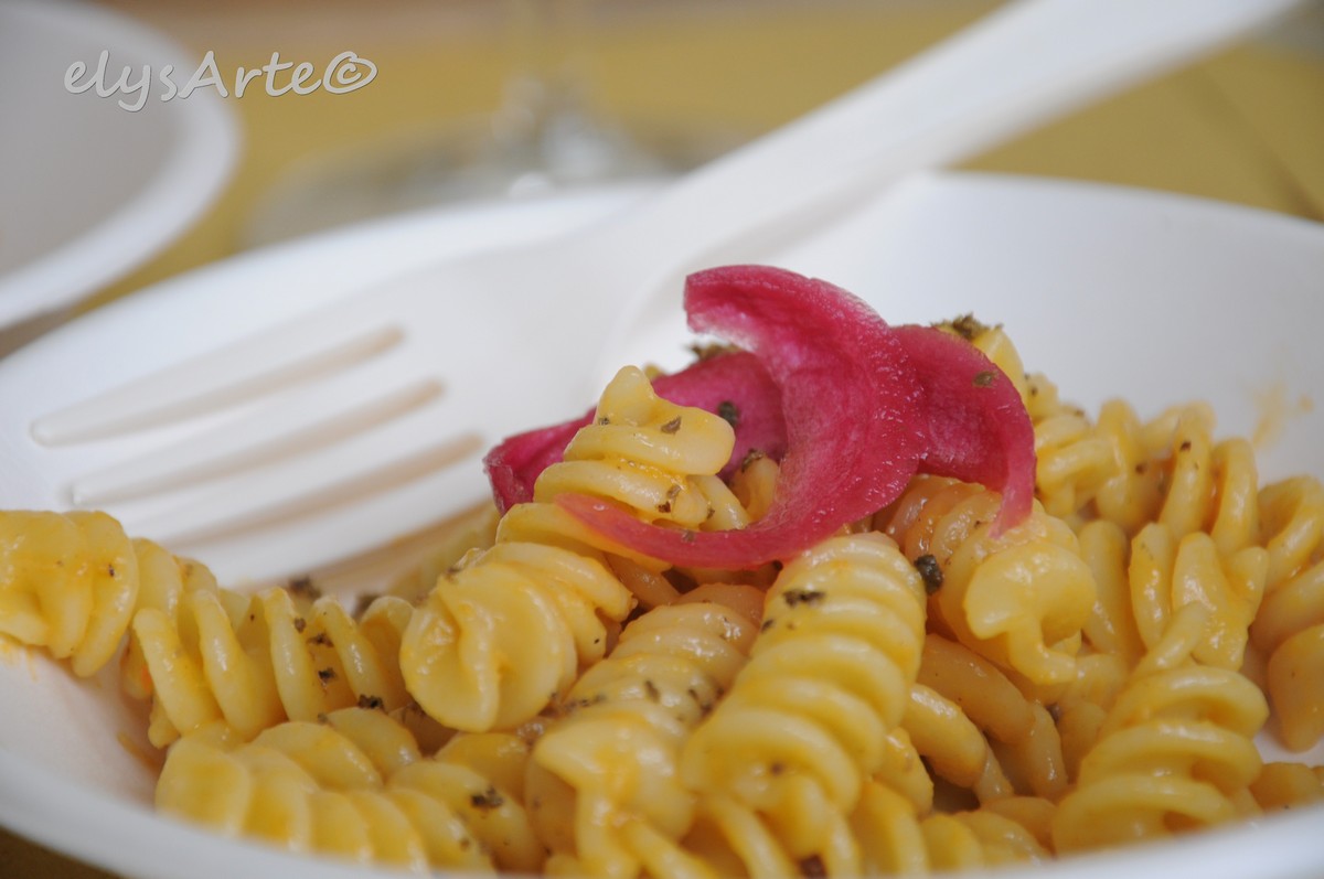 Assaporiamo i suoi paccheri di orzo con crema di peperoni, capperi, olive e cipolla in agrodolce: un’esplosione di colori e profumi che regalano la consapevolezza dell’Arte del cucinare.