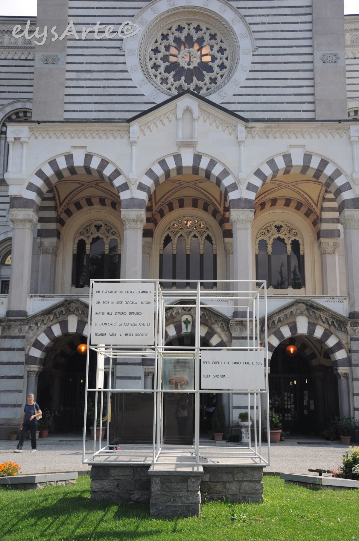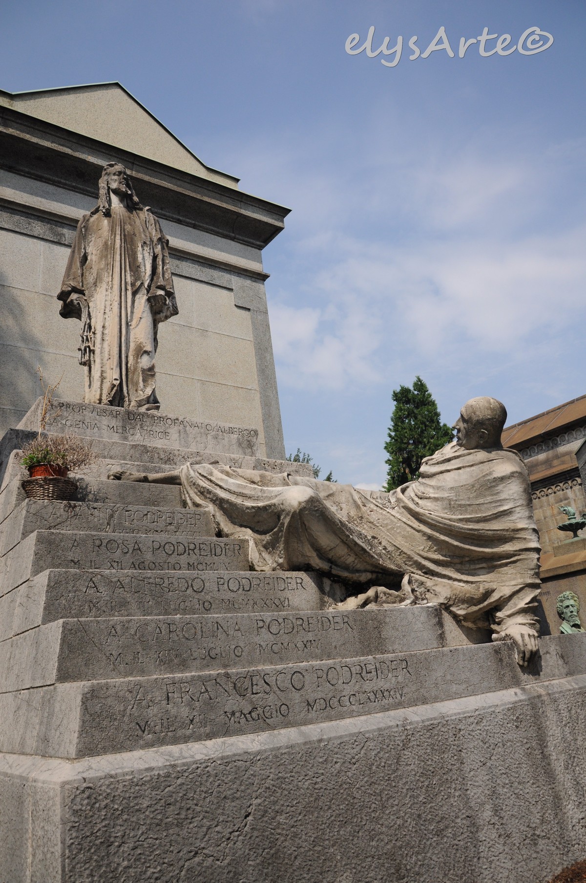 Vi è rappresentata la Via Crucis. Ci sono ben 110 statue di marmo! Visto questo numero considerevole, Giannino Castiglioni che le scolpì tutte, utilizzò come modelli gli operai impegnati ad edificare la tomba.