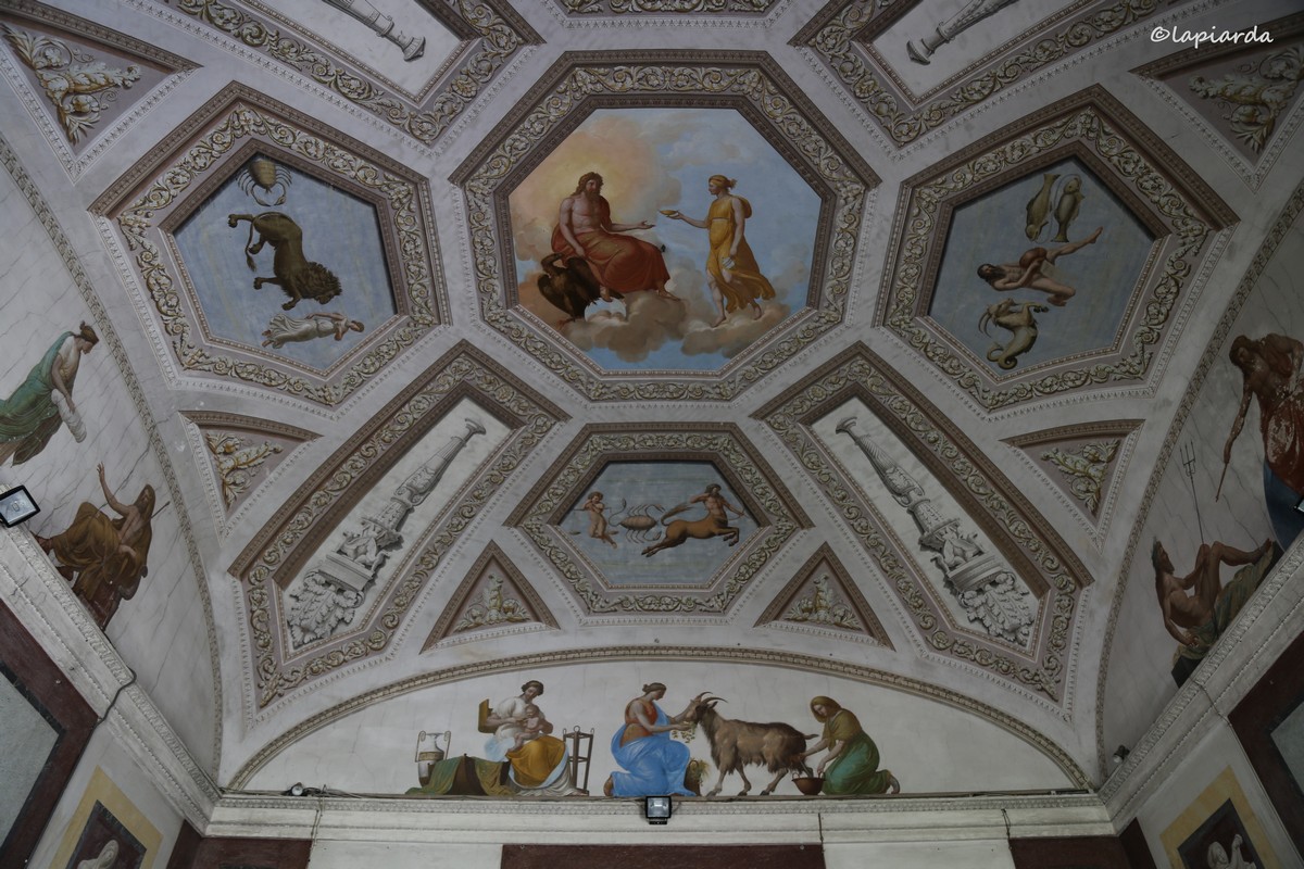 La coffee house nei pressi del laghetto è un elemento spesso presente nell’arredo dei parchi e giardini storici: una sorta di chalet in mattoni utilizzato come luogo di relax e di svago. Le pareti interne sono decorate a grottesche.
