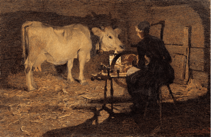 Tutte e tre le opere sono capolavori ma l’effetto magico della luce, che ammanta la scena di trascendenza è ancor più percettibile in All’ovile, proprio per la dimensione più intimista.