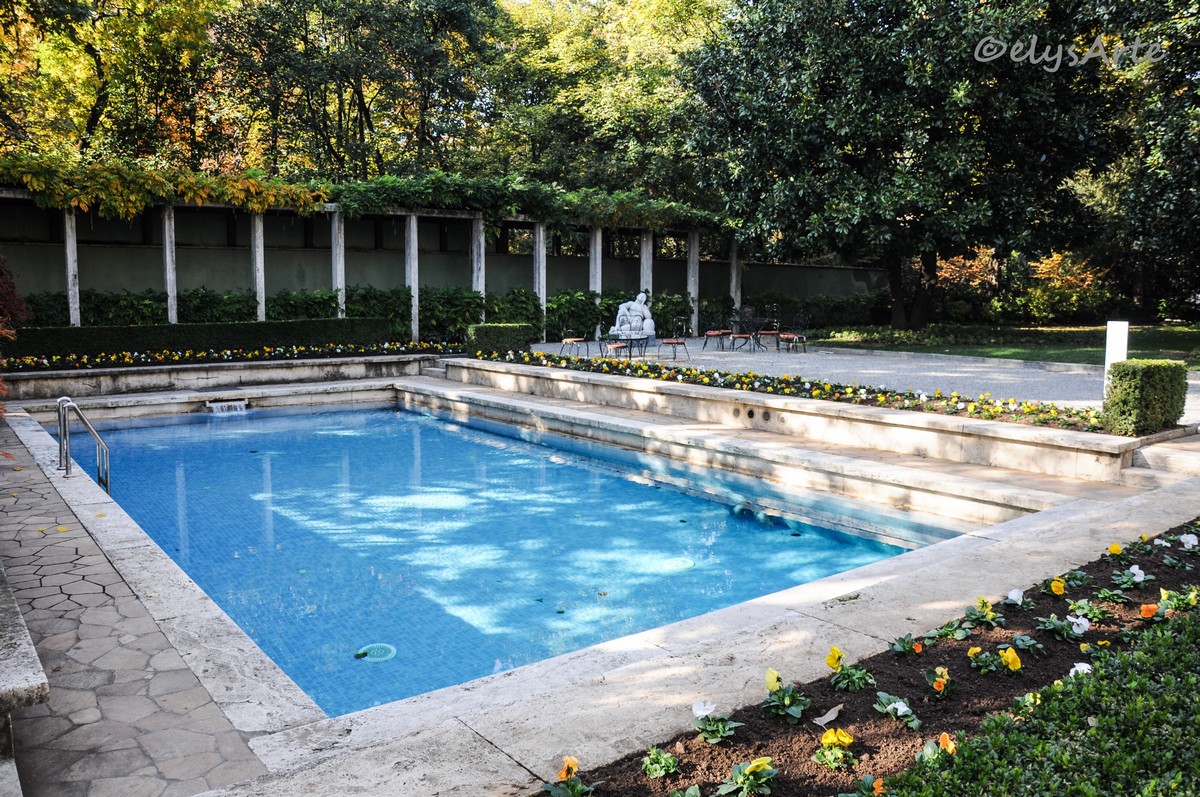 C’è una piscina, qualche scultura, un maestoso ingresso e gli efficienti volontari FAI che ti accolgono come se fossi…a casa.